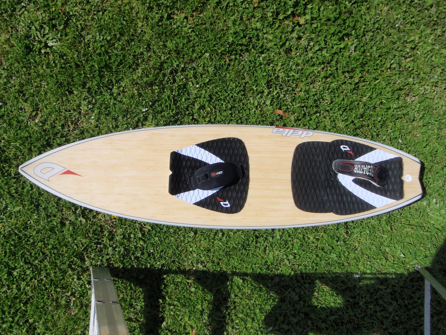 Last year we addressed the age old problem of deck strength of polyester boards. Having satisfied ourselves that there is no advantage in EPS/EPOXY construction, we tried vacuum laminating wood onto the deck using epoxy resin and lots of reinforcing under the foot areas. This was a marked improvement as the boards felt a lot better through the chop and no dents were appearing . It took a couple of months to source a good supply of bamboo in the right dimension but once we got onto it , it's become the standard deck laminate on all kiteboards.